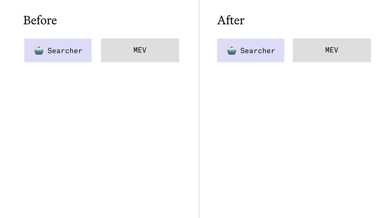 The searcher who submits Alice’s intent will have the exclusive right to backrun her, since they can do so atomically in the same transaction. As a result, if searching is competitive, all of the profit from backrunning Alice should accrue to Alice through her MEV tax.